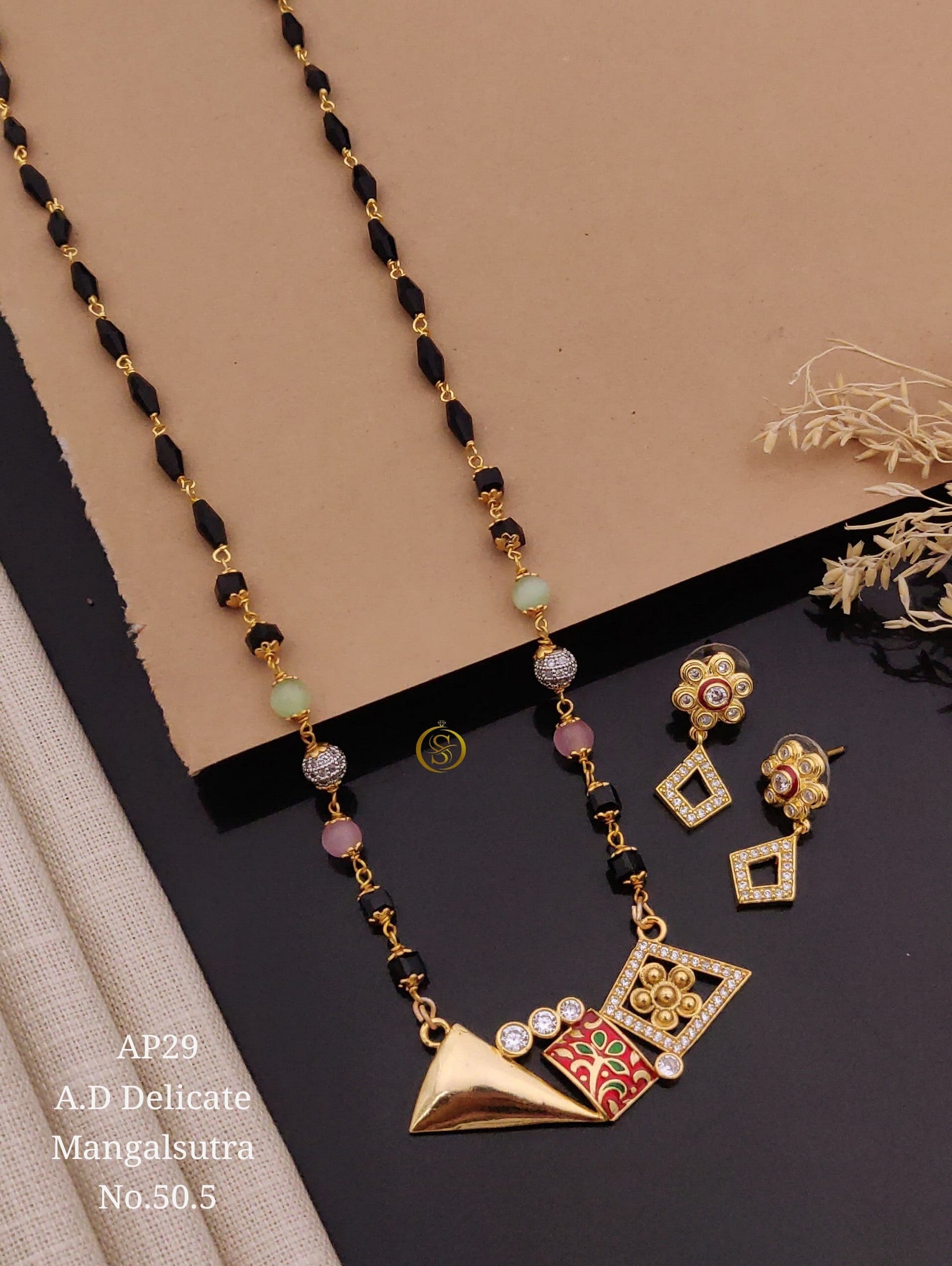 Artistic Enamel Pendant Set with Black Beads