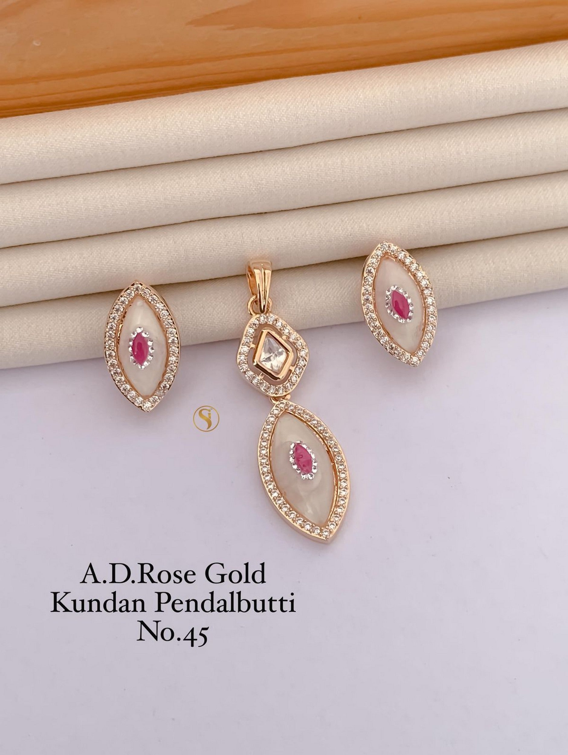 Dual-Tone Kundan Pendant Set with Pink Accents