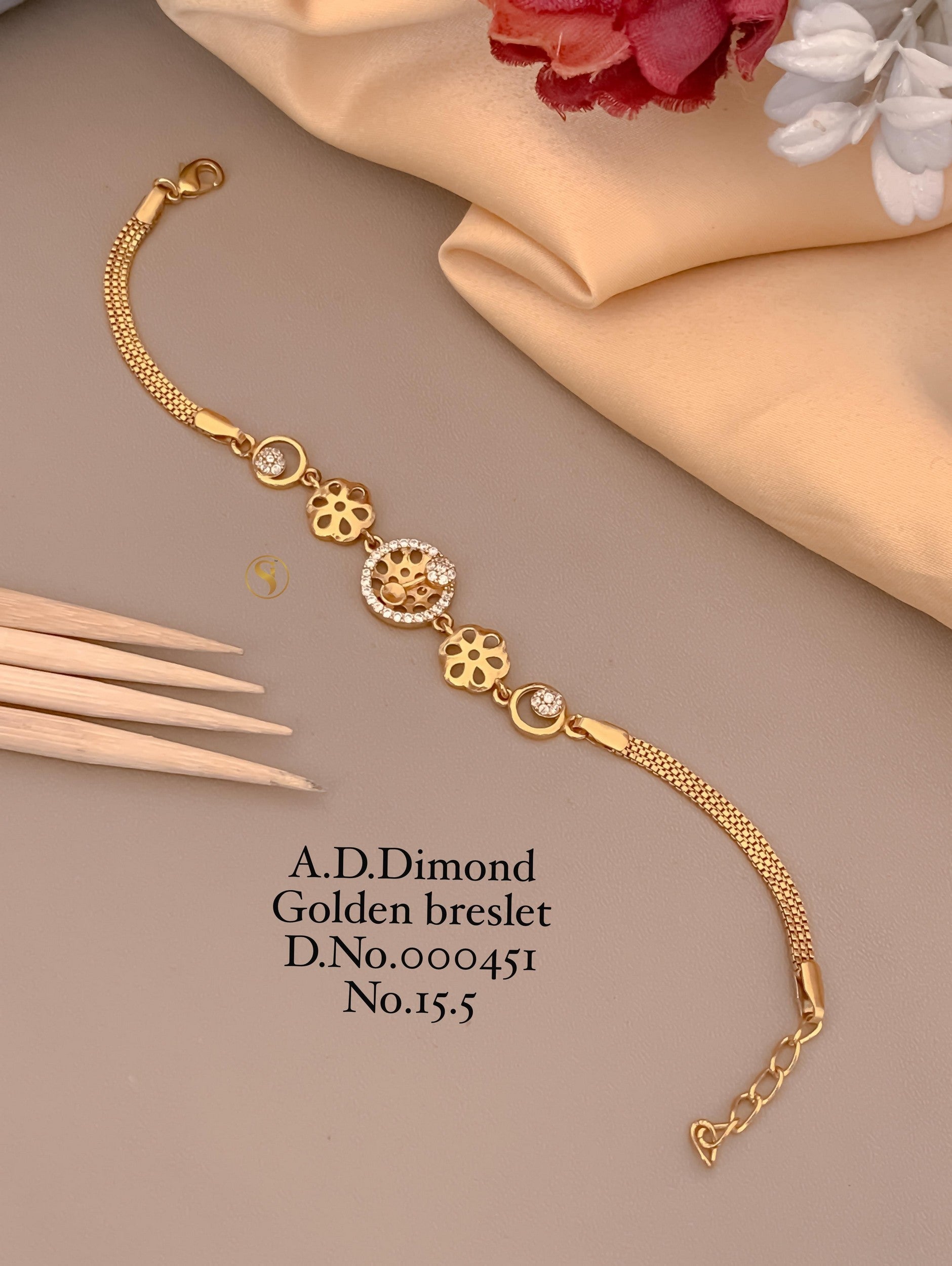 Elegant Golden Bracelet with Floral Charms