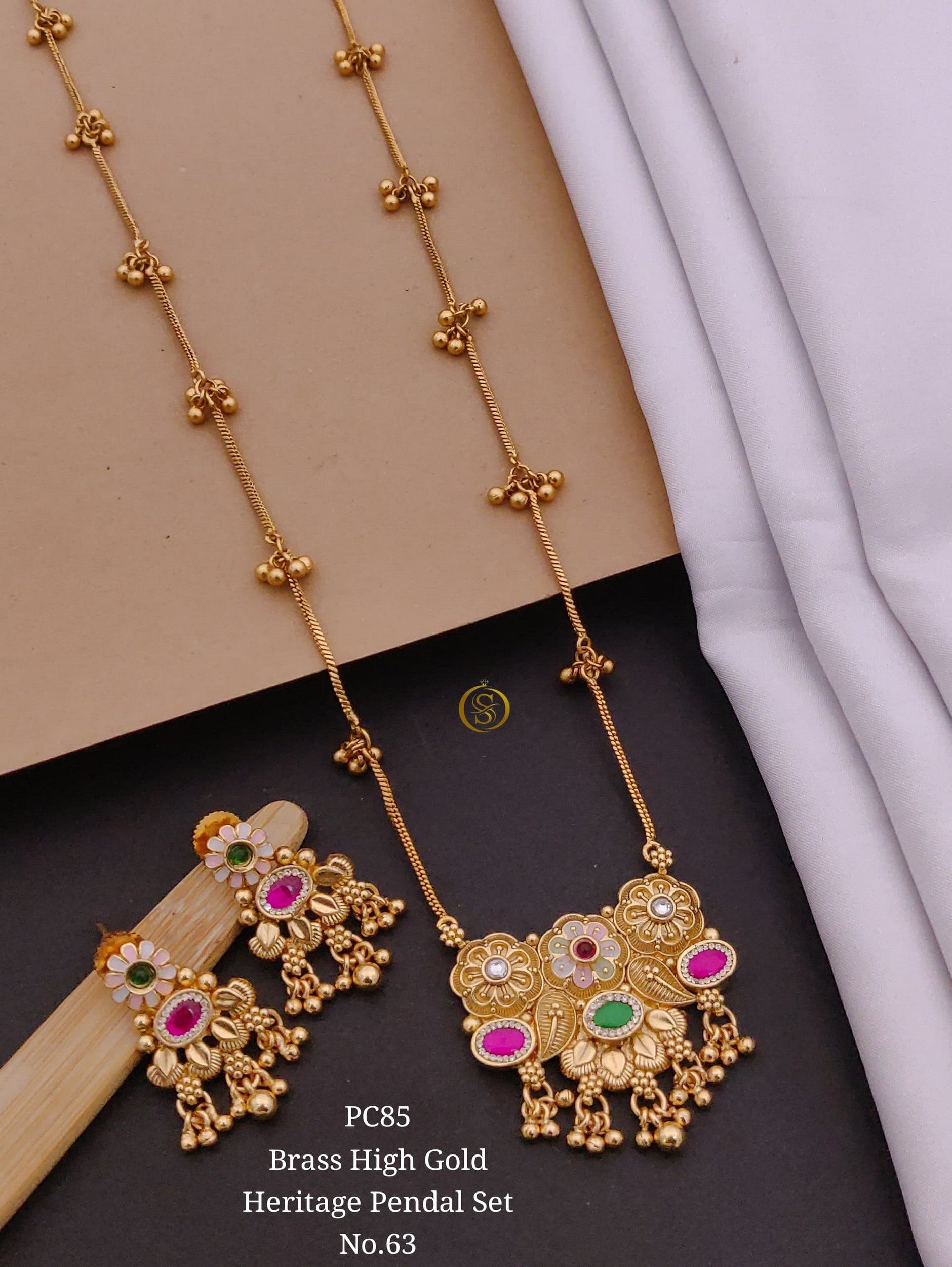 Floral Cluster Pendant Set in High Gold Finish