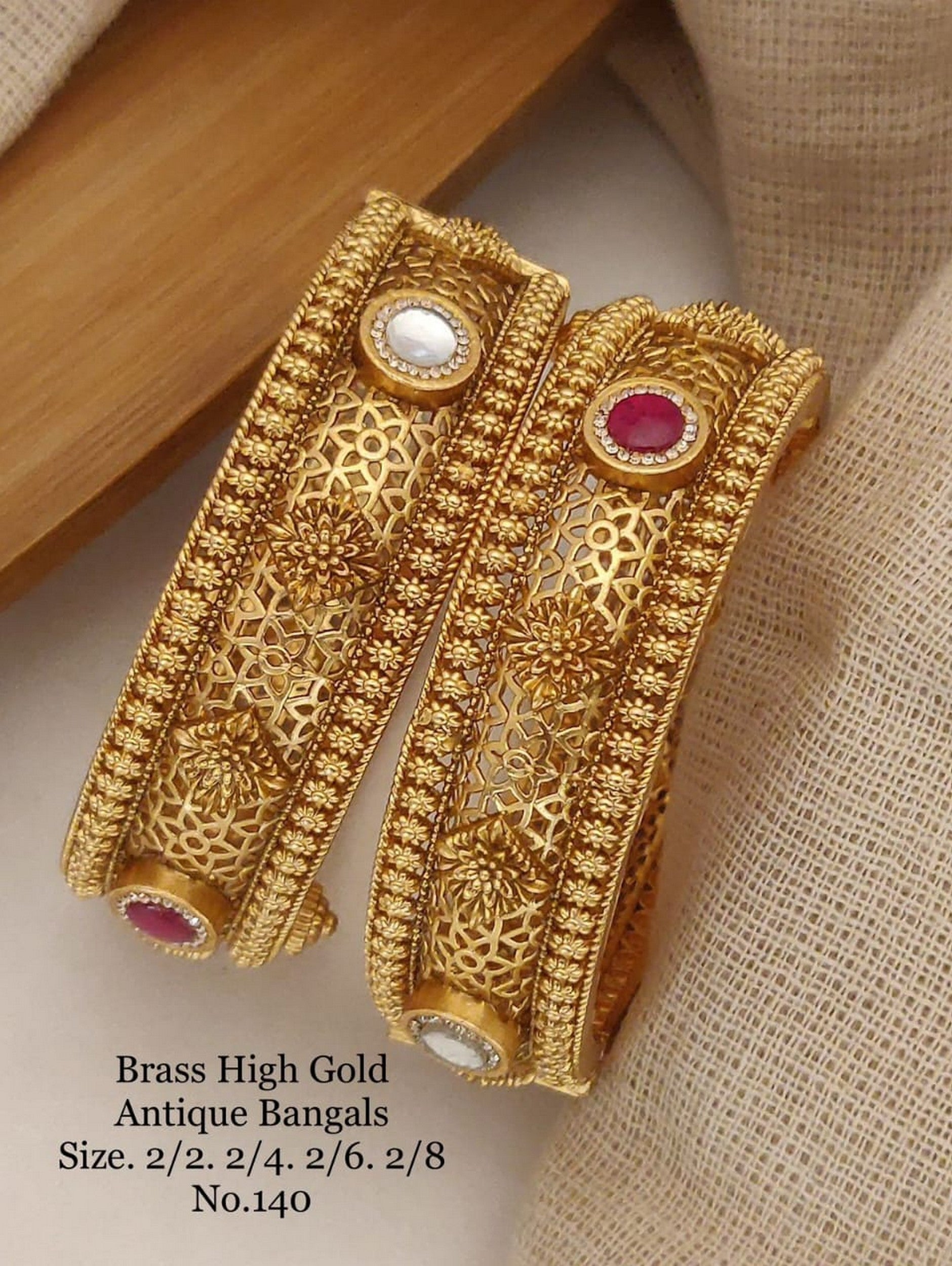 Floral Filigree Antique Bangles with Dual Tone Stones