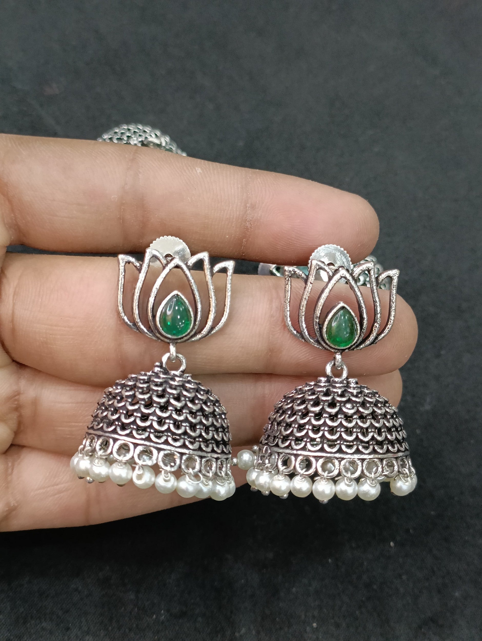 Lotus Shaped Oxidised Jhumkas