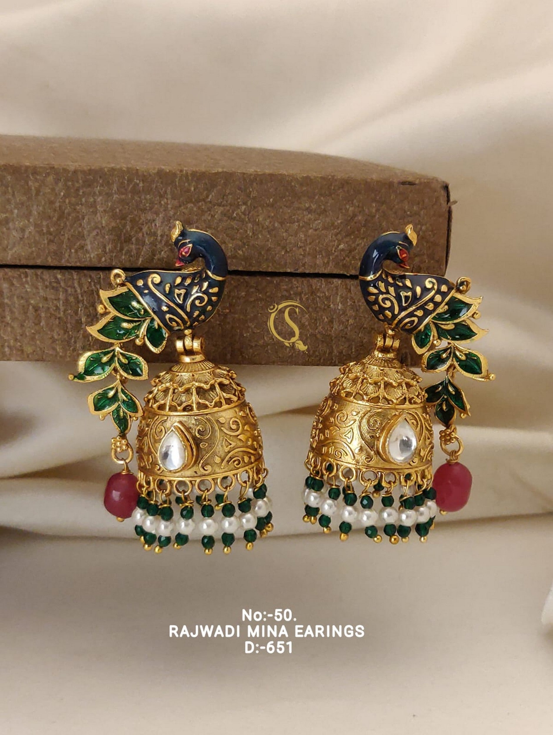 Rajwadi Mina Peacock Shape Jhumkis