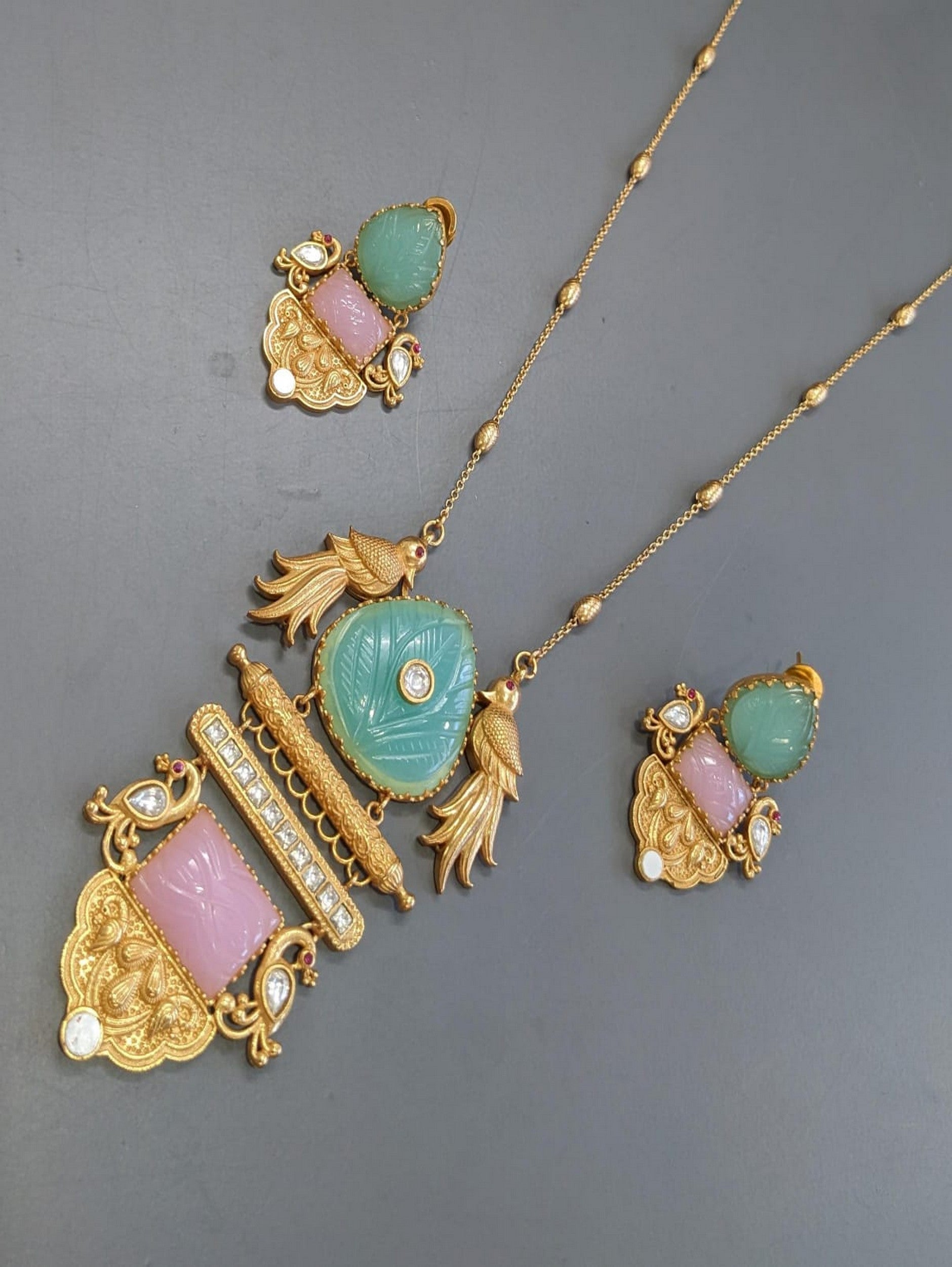 Antique Finish Multicolor Pendant Set with Earrings – Ideal for Festival Wear