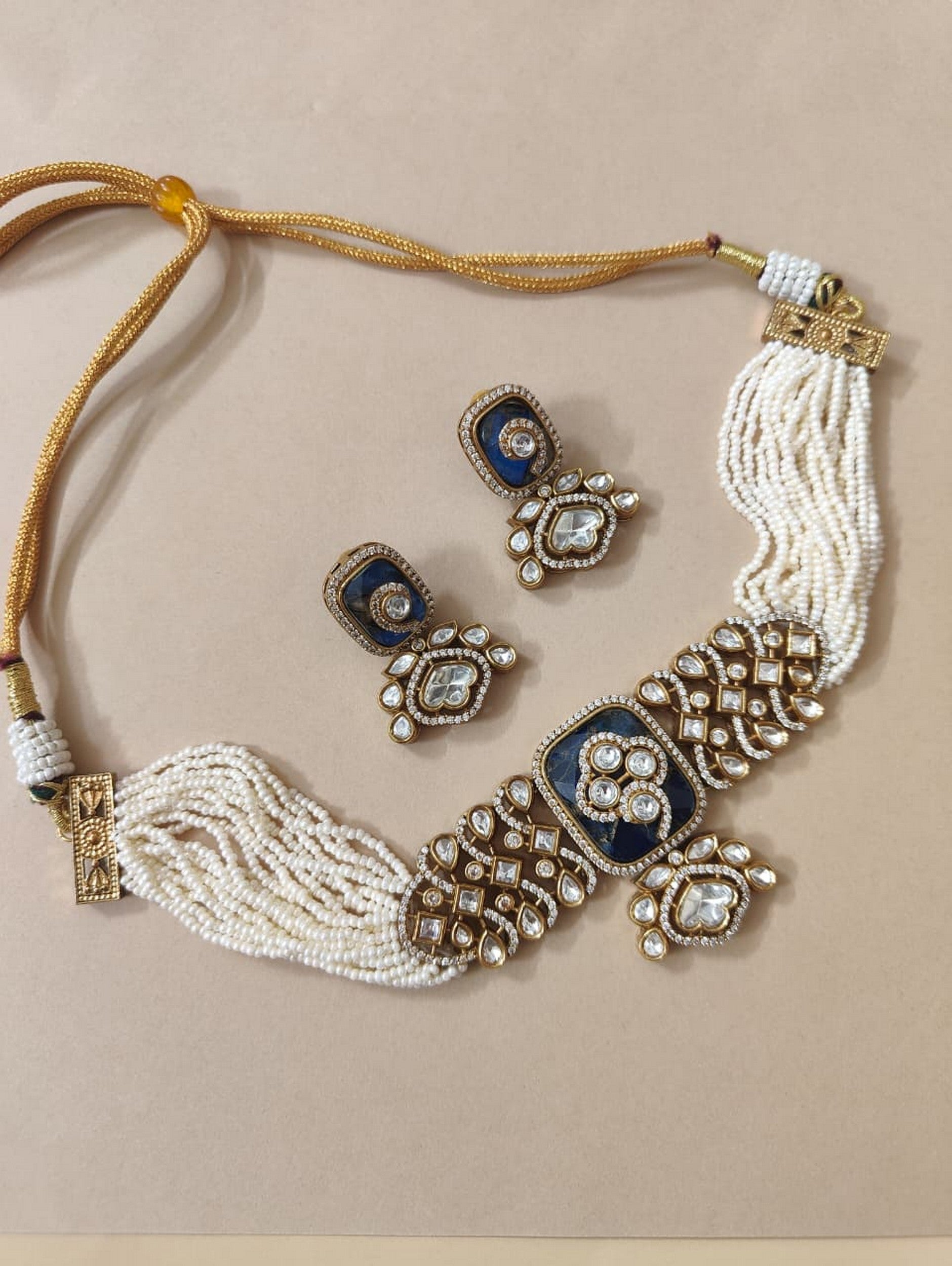 Traditional Monsonite Choker with White Moti